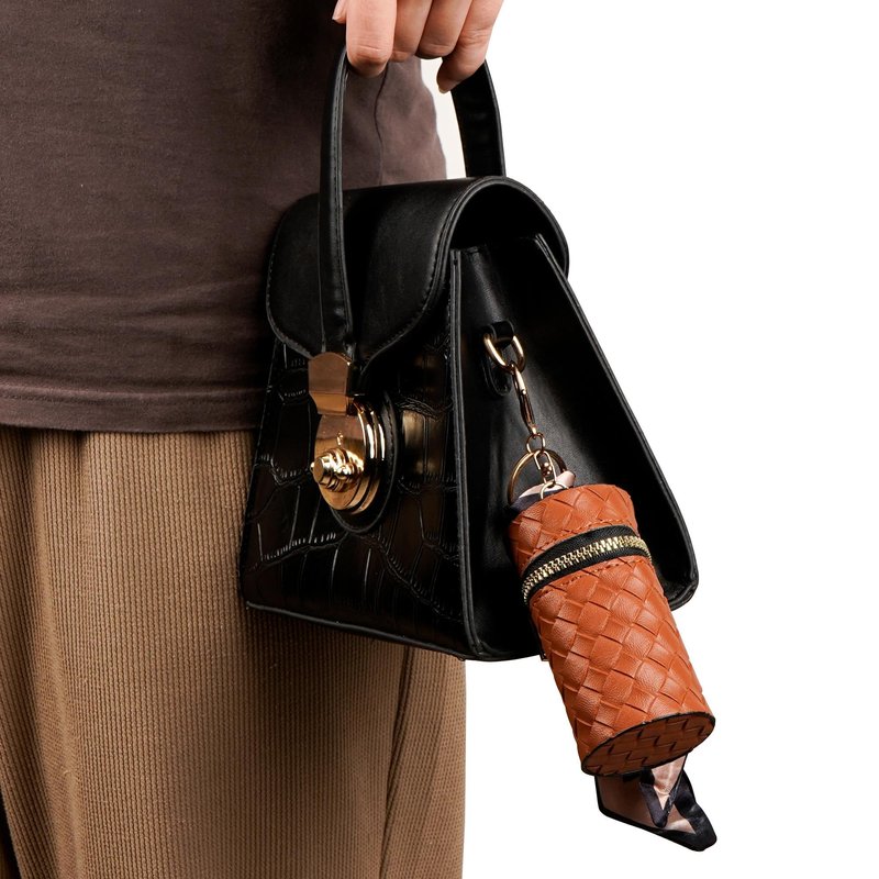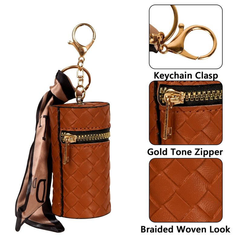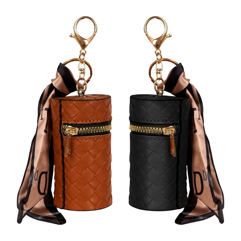 Elevate your beauty routine with th stylish 2-Pack Mini Braided PU Leather Lipstick Case for 1 Lipstick, designed to store your lipsticks and small beauty essentials in a chic, portable fashion. Made from synthetic leather with a stylish braided texture, this cylinder-shaped case is great for carrying on-the-go, whether you are out for a day of errands or traveling. The smooth zipper closure ensures your cosmetics stay secure, while the detachable scarf adds a touch of sophistication. Plus, the keychain hook lets you conveniently attach it to your bag or keys.