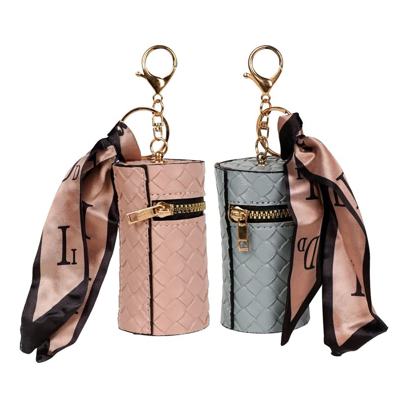 Elevate your beauty routine with th stylish 2-Pack Mini Braided PU Leather Lipstick Case for 1 Lipstick, designed to store your lipsticks and small beauty essentials in a chic, portable fashion. Made from synthetic leather with a stylish braided texture, this cylinder-shaped case is great for carrying on-the-go, whether you are out for a day of errands or traveling. The smooth zipper closure ensures your cosmetics stay secure, while the detachable scarf adds a touch of sophistication. Plus, the keychain hook lets you conveniently attach it to your bag or keys