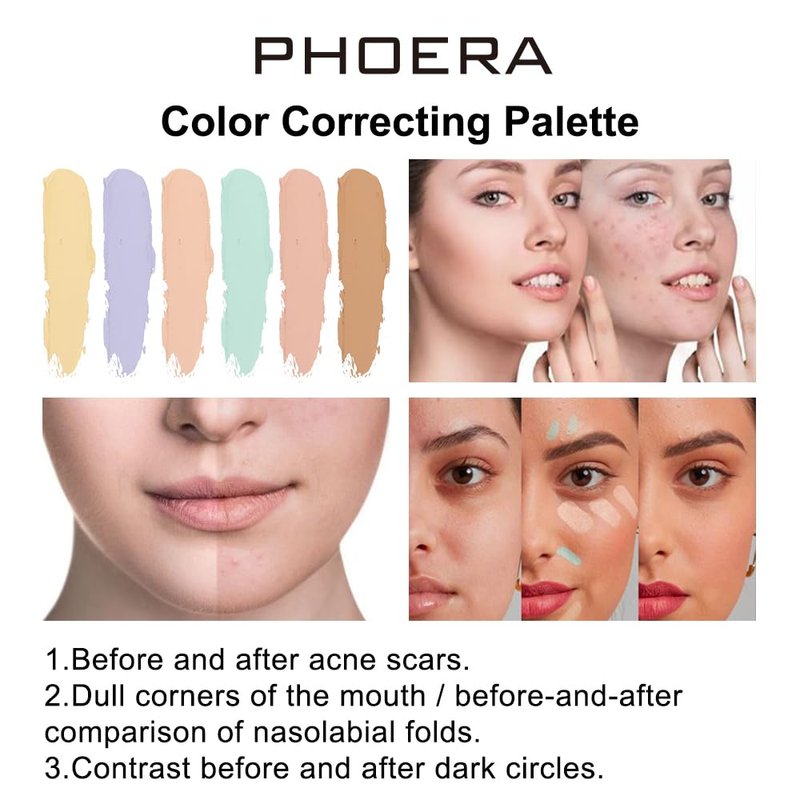 PHOERA Concealer Full Coverage,Face Contouring Color Correcting Concealer Palette.(03 Deep)