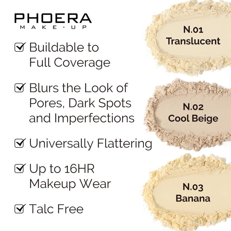 - ➤【Lasting Flawless Loose Setting Powder】PHOERA setting powder provides a touch of coverage to lock in makeup for long lasting wear and a flawless end result.