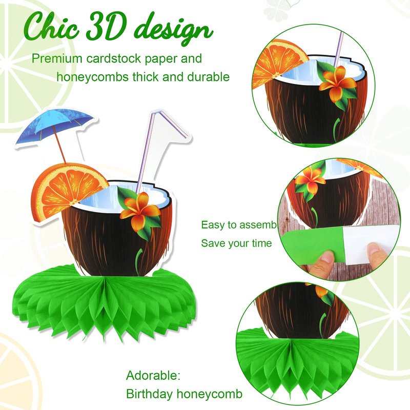 - Easy to Assemble: Our Hawaiian party supplies are very easy to assemble according to the instructional pictures and take only seconds to complete. These adorable paper table centerpieces will add a touch of fun in your hawaiian tropical themed party.