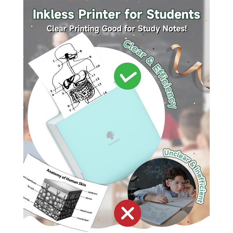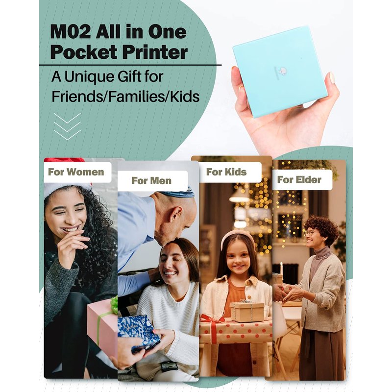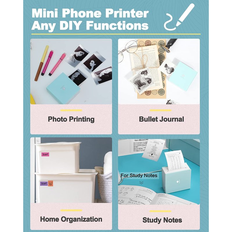- √ Mulituse with M02 Pocket Printer- Pocket phone printer is good for printing black and white photos, text, memos. You can use it at home, school and office. For students, children, teachers, shopping lists, plan journal, work plans, study notes, ect. Also a gift for everyone.
