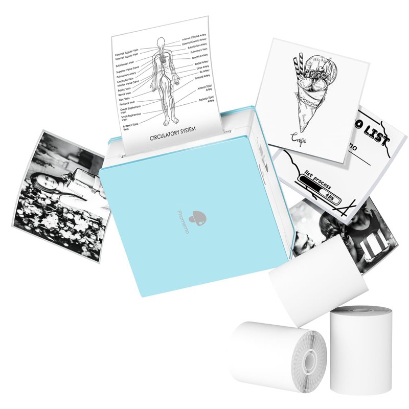 - √ You can Get- 1 Phomemo Cyan M02 Mini Pocket Printer, 1pcs 53mm Black on White, Transparent, Semi-transparent Sticker Paper. 1 Micro USB wire.