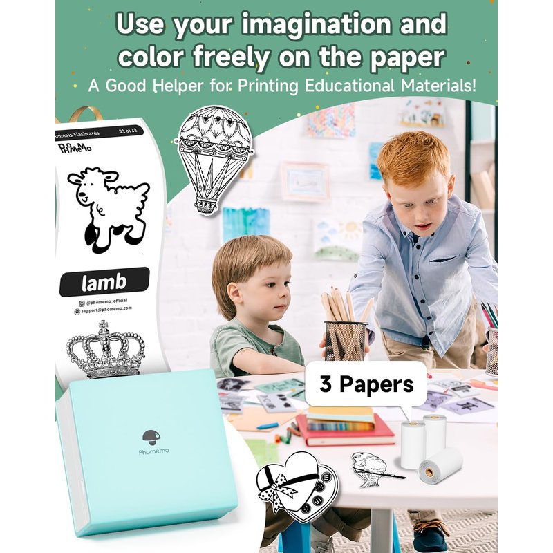 - √ Pocket Printer Works with More than 40 Kinds Paper- Phomeo M02 note printer not only for regular sticker paper, special for clear/semi-transparent/gold gillter/Silver sticker paper. More different printer papers to make your printing more interesting.