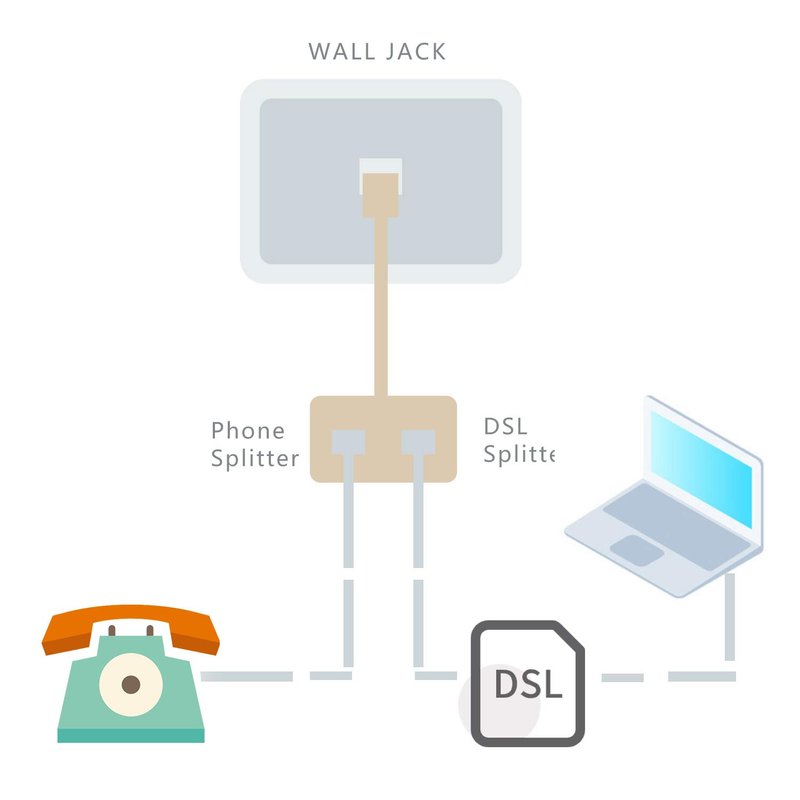 - [DSL Line Splitter] - One end of wall phone filter is RJ11 6P4C Male and the other ends are 2 RJ11 6P2C Female, RJ11 6P4C Male to 2 Female Telephone Modem DSL Splitter Filter allows the internet to work on your PC through the telephone line (connected to the modem of course)