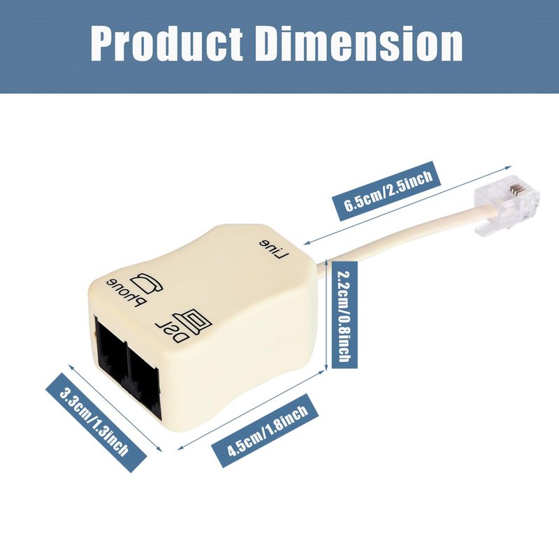 - [Product Size] - The size of telephone line filter is 3.3 x 4.5 x 2.2cm / 1.3" x 1.8" x 0.8" (L*W*H) and the length of cable is 2.5" (6.5cm)