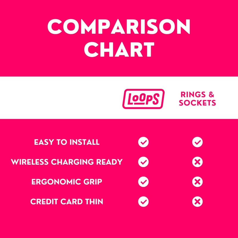No need to purchase a new case for your mobile phone - the universal and modular design of Phone Loops make them universally compatible with virtually any phone case on any model. With their incredibly thin and light design, Phone Loops are also fully compatible with wireless chargers and magnetic phone holders.