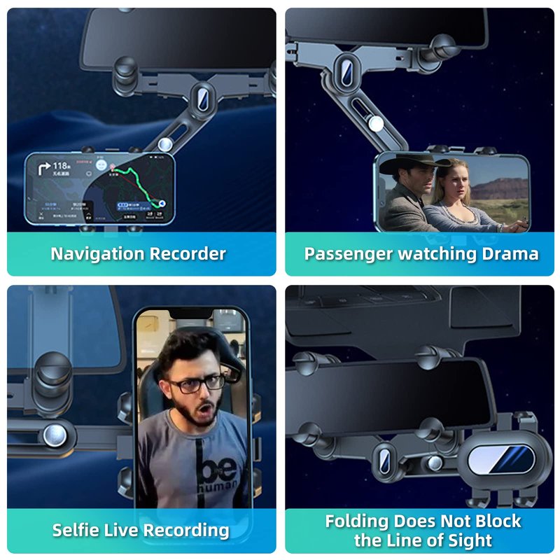 Rotatable and Retractable Car Phone Holder Rearview Mirror 360 Degree Rotatable Phone Mount
