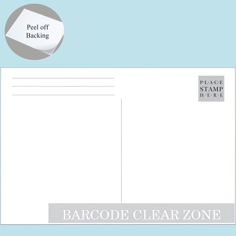 Send your friends one of your photos on these sturdy postcards! Meets U.S. Postal regulations. Just peel off the adhesive backing and place photo on the front. Use your 4" x 6" prints full frame.