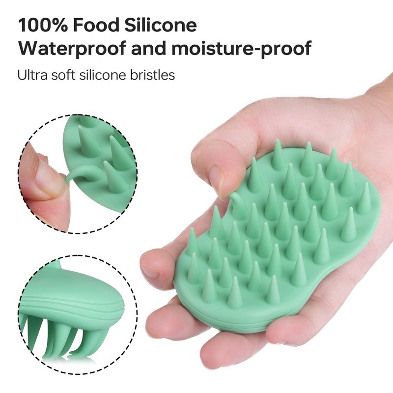 - Soft silicone bristles -100% silicone bristles are very soft and can fit any head shape without tangling or pulling hair. These bristles can also effectively clean and massage your scalp without any discomfort.