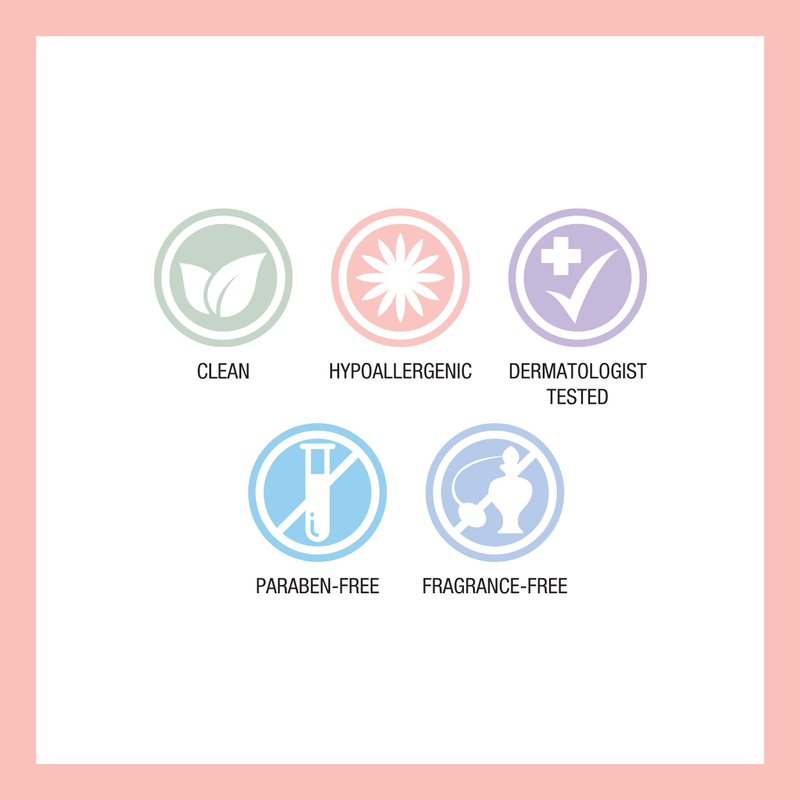 - Hypoallergenic; Fragrance free; Paraben free; Non-Comedogenic; Dermatologist approved