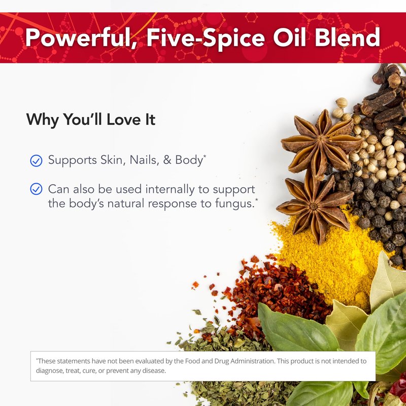 - SUPPORTS SKIN, NAILS & BODY - Fung-X is a powerful, five-spice oil blend that supports the continued health of skin and nails.