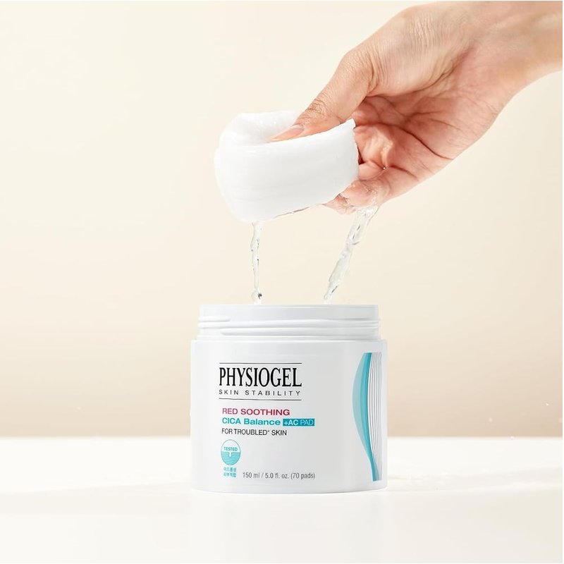 Physiogel Red Soothing Cica Balance Calming Toner Pad for Men & Women, Gentle Exfoliating & Skin Soothing, Cica, BHA Salicylic Acid, Niacinamide, For Sensitive & Acne Prone Skin - 70pcs