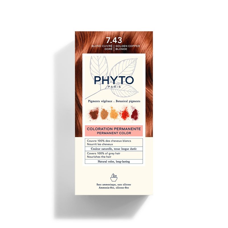 Phytocolor Permanent Hair Color, 7.43 Copper Golden Blonde, with Botanical Pigments, 100% Grey Hair Coverage, Ammonia-free, PPD-free, Resorcin-free