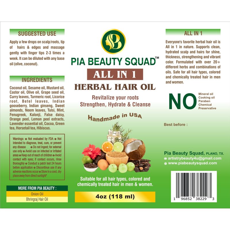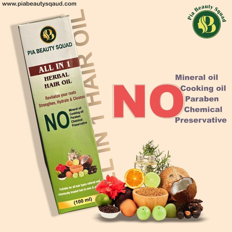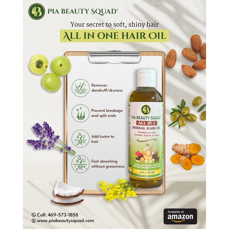 Pia Beauty Squad All-in-1 herbal hair oil for Hair Fall, Dandruff, Dry Scalp | 23 Herbs, Almond | Handmade, Chemical-Free | all ages