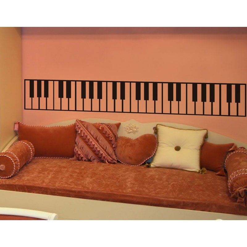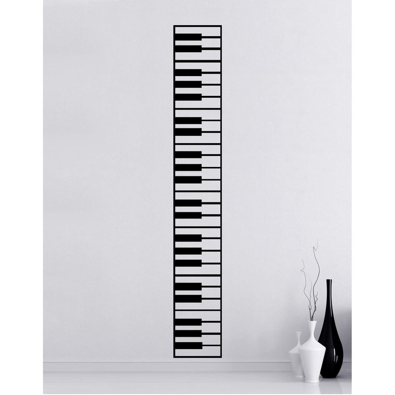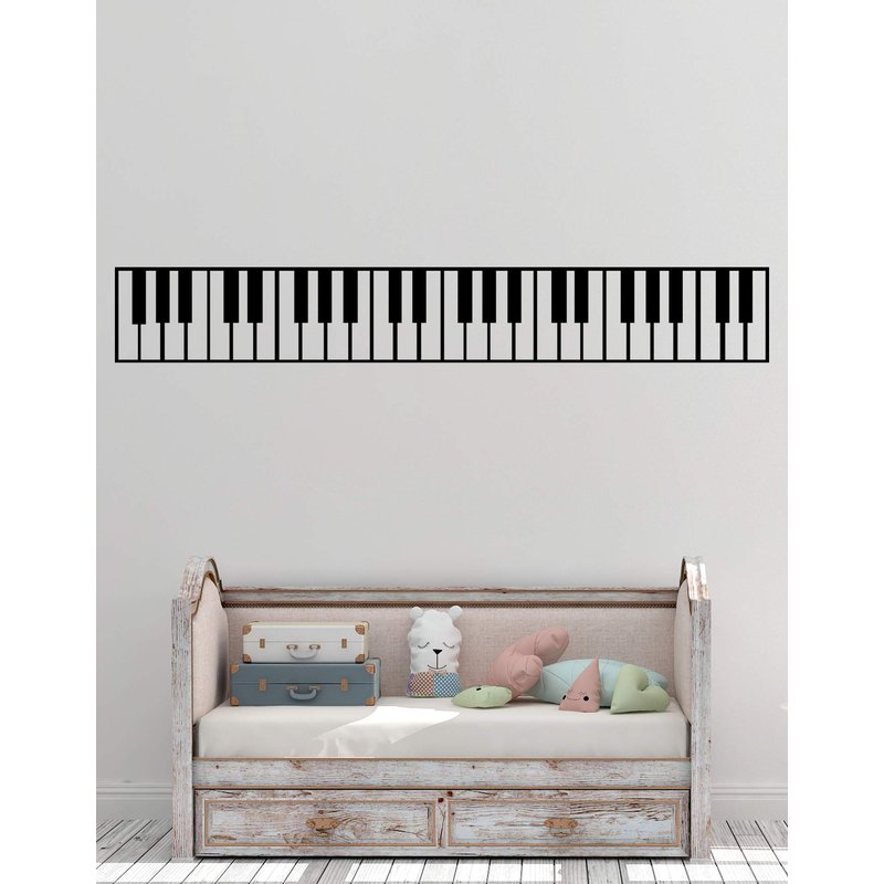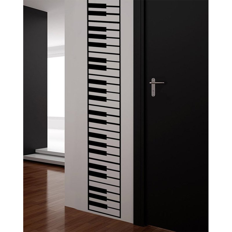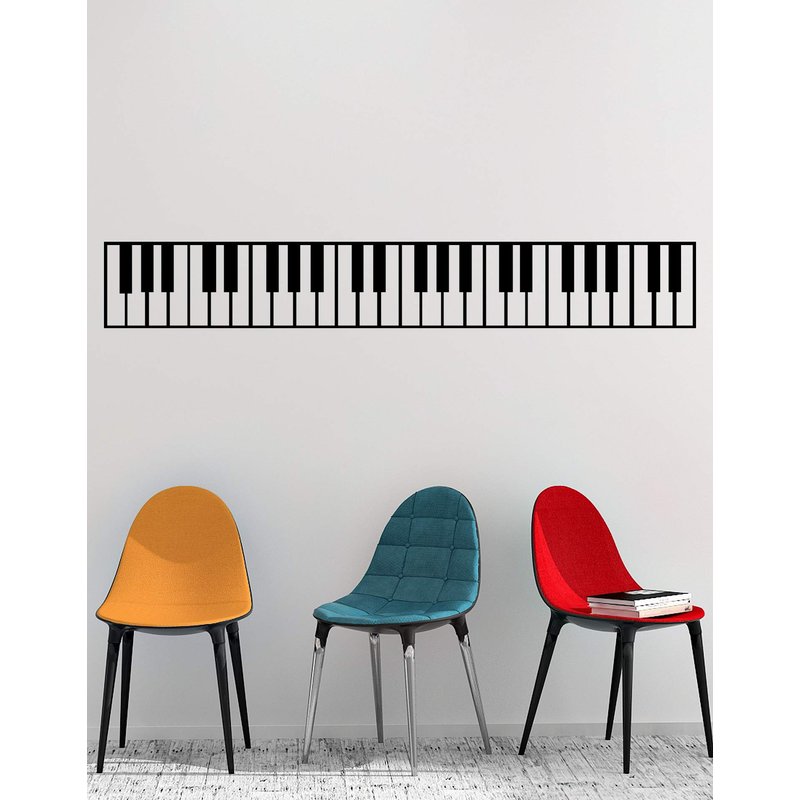 Piano Keys Wall Decal Sticker. Musical Instrument Decor. - Black, 10" x 72". Easy to Apply & Removable.