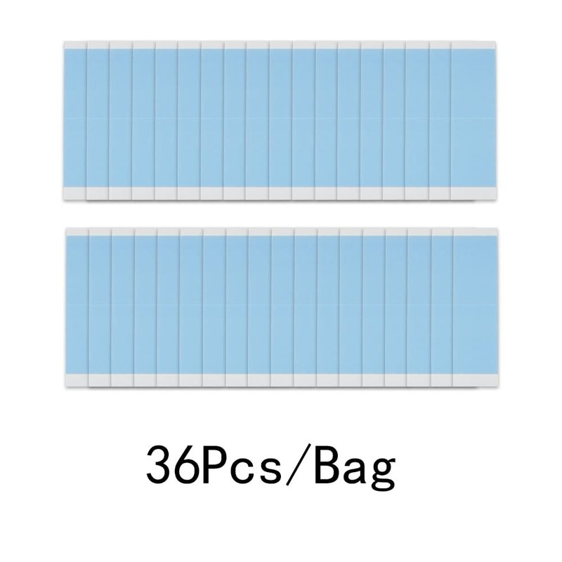 36 pieces,Size: 0.98" x 3.07",Color: Blue Hold Time 4 weeks+,Easy to apply, easy to remove Waterproof and skin proof Use for Lace Wigs,Toupee,Hair System and so on. Double Sided, medical adhesive tape in strips, safe, used to hold hairpieces to the scalp