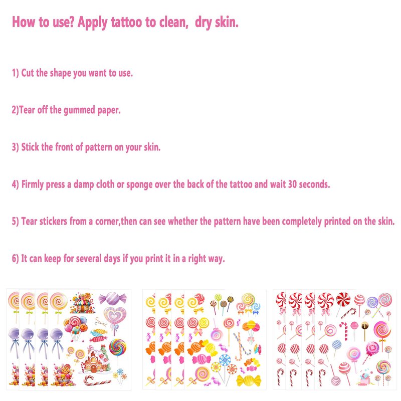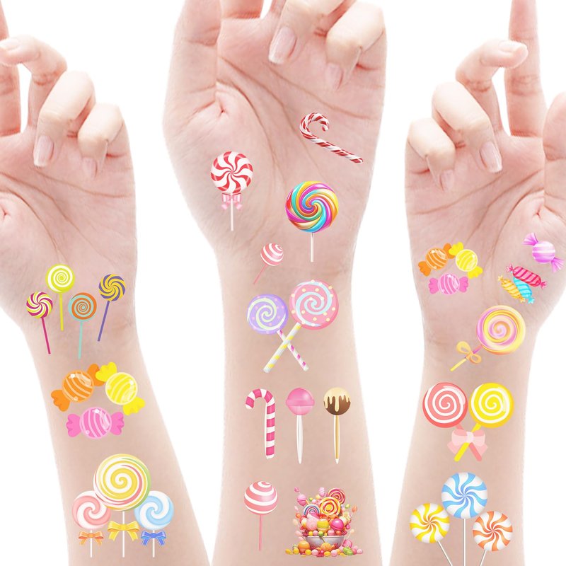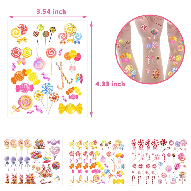 - Includes:472 packs of Candyland theme Tattoos Temporary, the number is enough to meet your needs and they can let you get an impressive happy party.