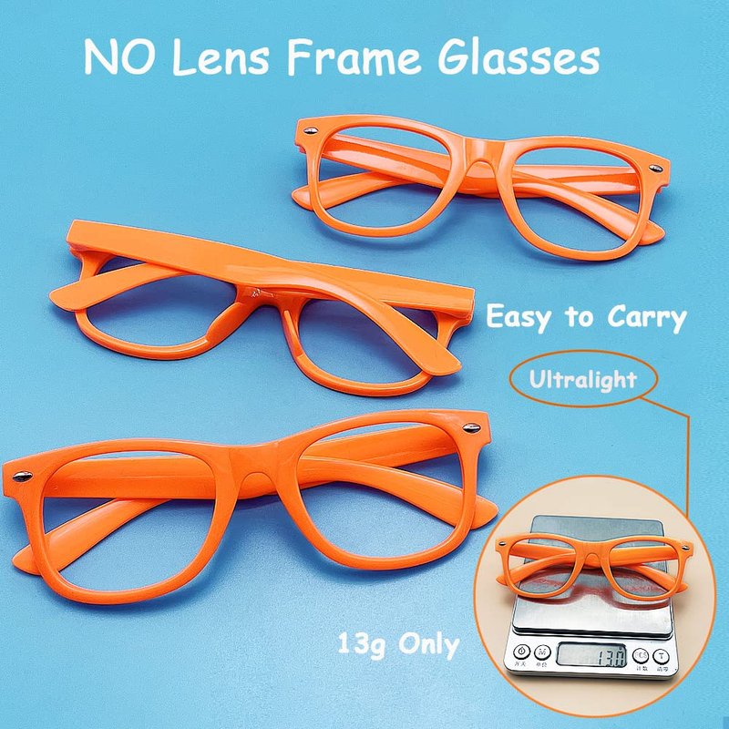 Pibupibu 8/20 Packs Kids/Adult Frame Only No Lens Orange/Multicolor Glasses Party Favors Supplies (Adult 8 Pack-Orange)