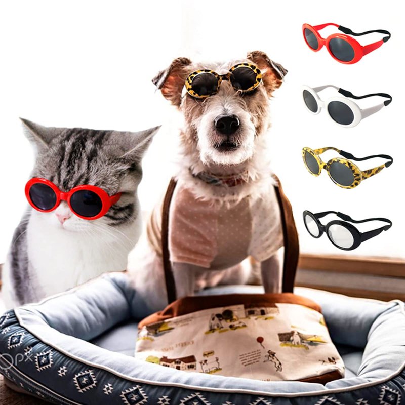 Pibupibu Retro Oval Small Dogs Cats Eye Wear Party Favors Pet Sunglasses Set Cute Funny Cosplay Dolls Costume Photo Props