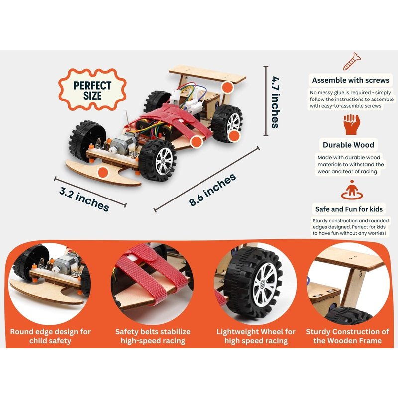 Pica Toys Wooden Wireless Remote Control F1 Racing Car Science Kit to Build (Red), STEM Project for Kids Aged 9 10 11 12 13, Science Building Kit Gift for Boys and Girls