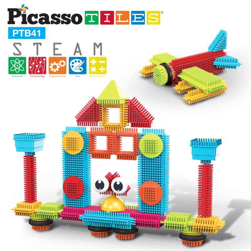 - FRUSTRATION-FREE BUILDING - PicassoToys bristle shape blocks offer easy interlocking connectivity and simple to disconnect to maximize fun and build creative designs. The 41 piece base set enables children to improve hand-eye coordination, gain a strong sense of color, shape, counting, sorting, attention, promotes the child brain development, and focus by using their hands to foster Science, Technology, Engineering, Art, and Math (STEAM) skills. Comes with an idea booklet.