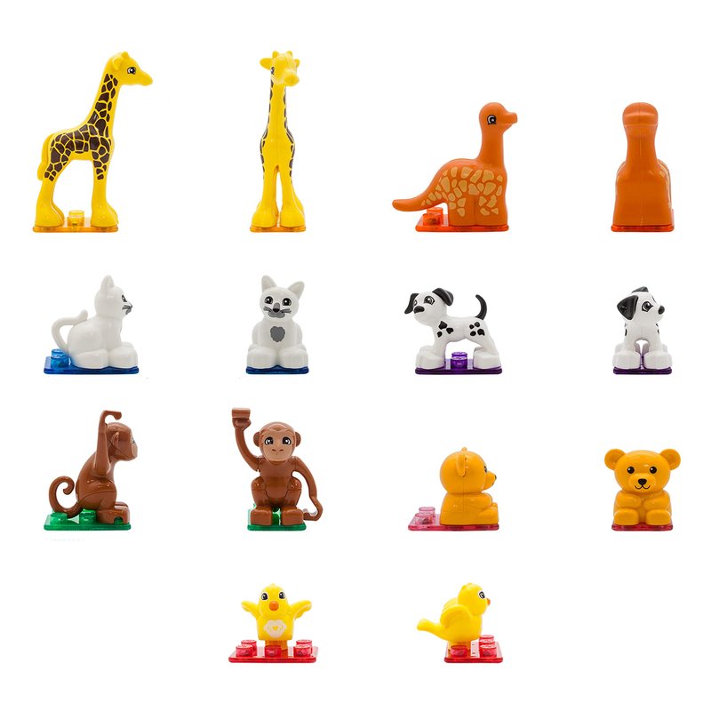 - DREAM BIG AND BUILD BIG - The 7pcs character figures include a giraffe, dog, cat, bear, rooster, monkey and giraffe. They can be used as stand-alone fun pieces or with other stacking magnet construction toy brands as integrated add-on pieces to enrich the design structure and cultivate children's creativity and imagination. Set the animal characters on the magnetic bricks to lock them in and place them on top of magnetic tile for extra fun possibilities while promoting creativity at an early age