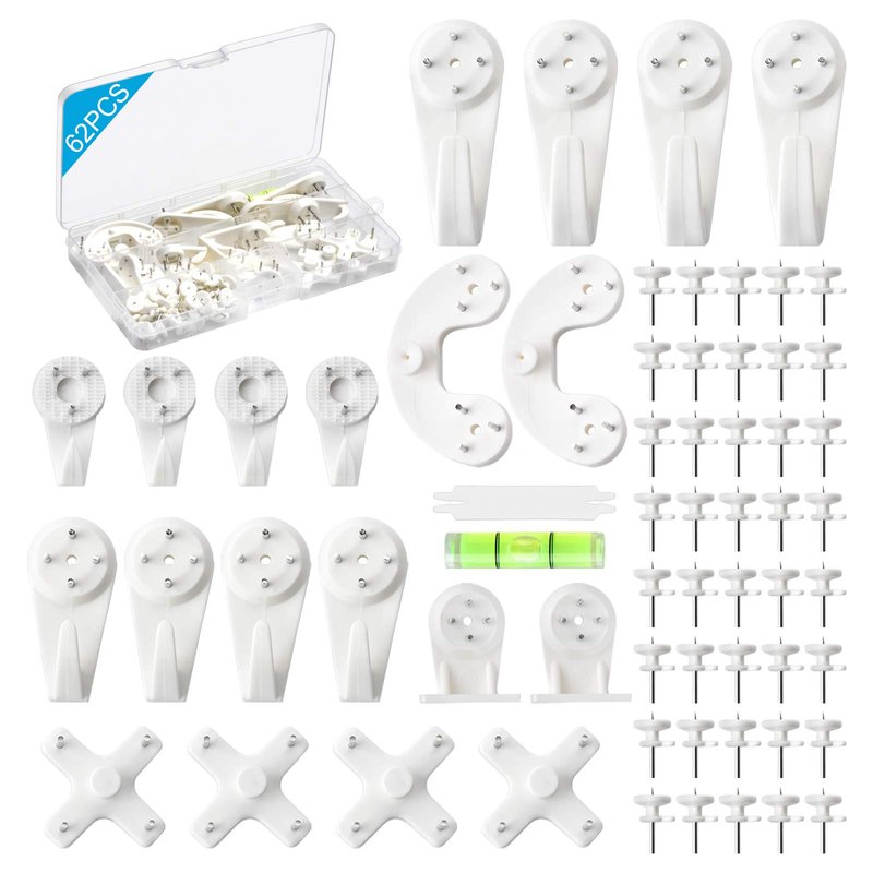 Picture Hanging Kit, 62PCS Hardwall Hangers for Cinder Block, Picture Hanger, Invisible Nail Hangers, No Damage Wall Hangers for Photo Frame Art Painting Non-Trace Drywall Stucco Concrete Hooks