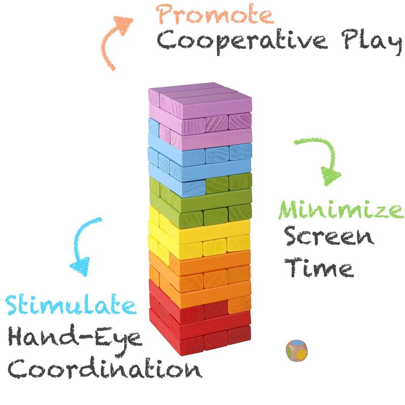 - Perfect stumbling blocks game for family and friends! Promotes coordination, communication and logic between children. The play concept using one's hand to remove blocks helps with hand-eye coordination and self-control.