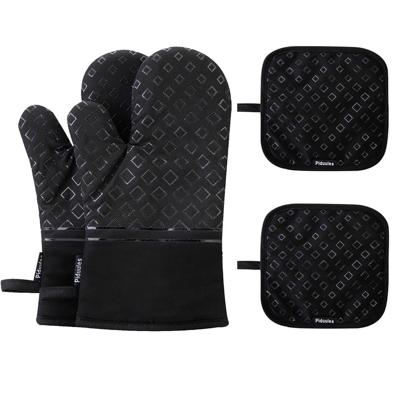 Piduules Set of 4 Oven Mitts and Pot Holders, 482 F Heat Resistant Hot Plate Moving Non-Slip Gloves for BBQ, Grill, Baking, Cooking, Oven, Microwave (Black)