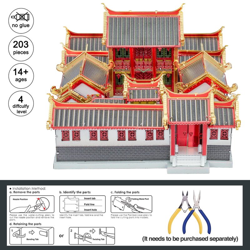 Piececool 3D Metal Model Kits-Guanque Tower-Famous Architecture Model Kits-DIY 3D Metal Puzzle for Adult-Great Gift Ideas-319 Pcs
