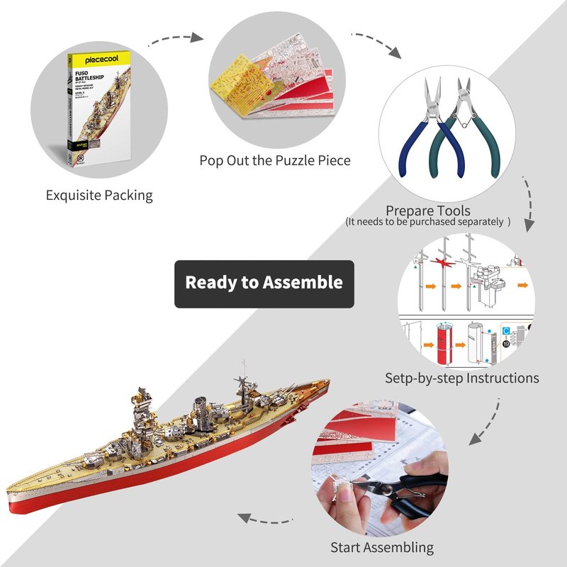 Piececool 3D Metal Puzzle Warship Model Kits, Fuso Battleship Military Watercraft Model Building Kits for Adults, DIY 3D Brain Teaser Puzzle Toys for Famliy Time, Great Gift-330 Pcs