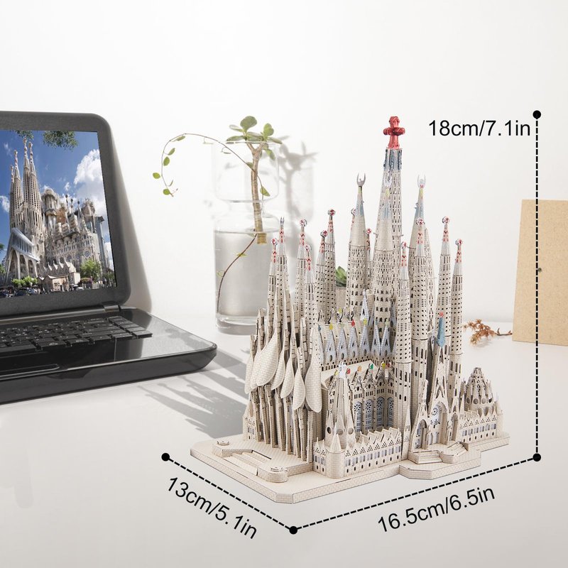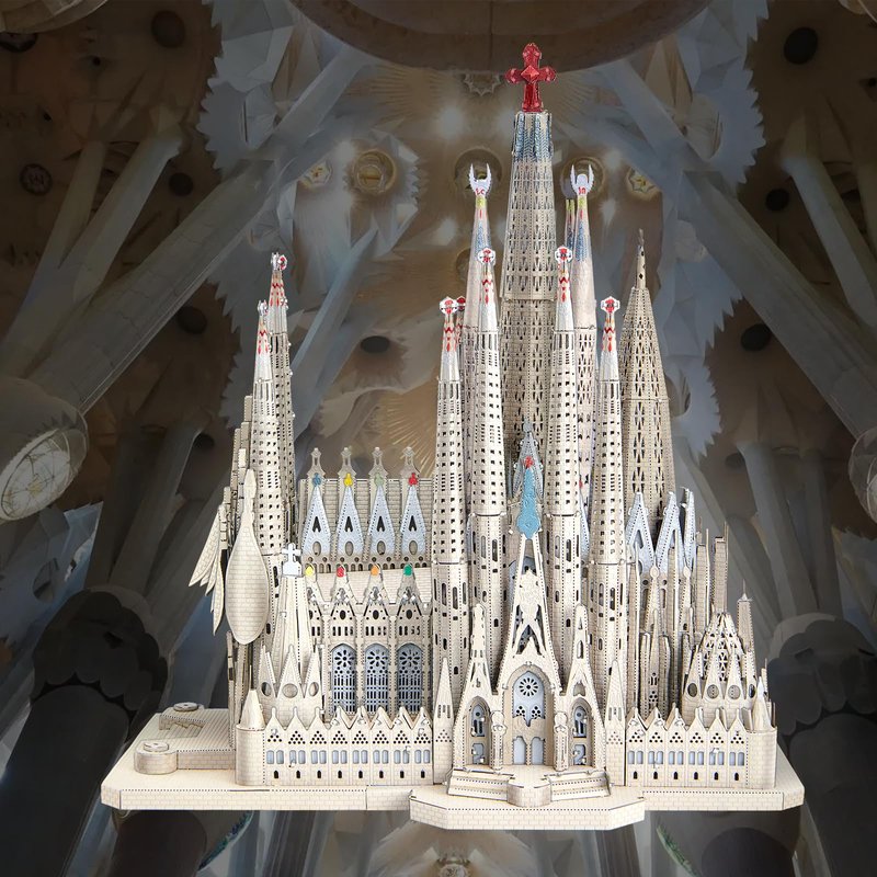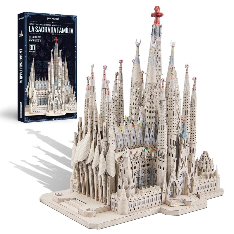 Piececool 3D Metal Puzzles for Adults and Teens, La Sagrada Família Metal Model Kit, Challenge Spanish Cathedral Brain Teaser Architecture Building Blocks Puzzle, 450 Pcs