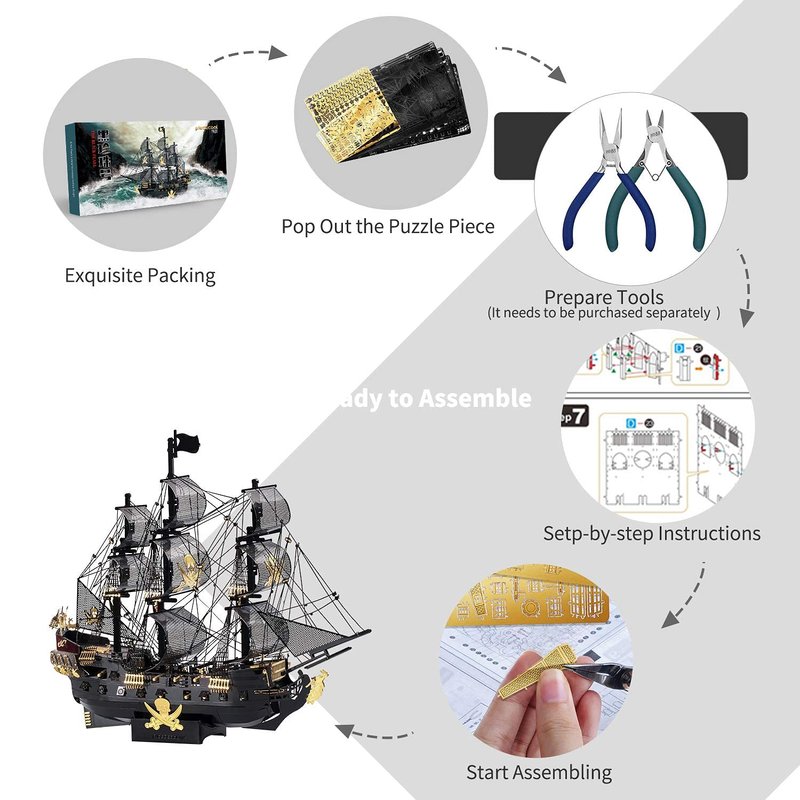 Piececool 3D Puzzles for Adults, Black Pearl Pirate Ship Metal Model Kits, 3D Watercraft Model Building Kit, DIY Craft Kits for Family Time, Great, 307Pcs