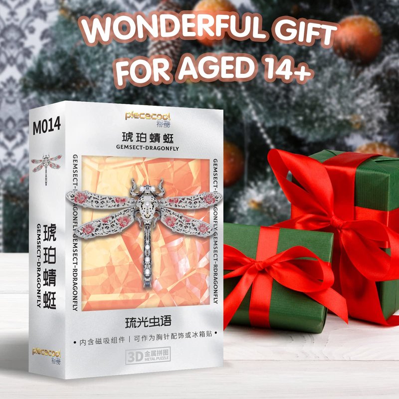 Piececool 3D Puzzles for Adults, Dragonfly Metal Model Building Kits Insect Themed Brooch Assembling DIY Crafts Creative Birthday Gifts,25Pcs