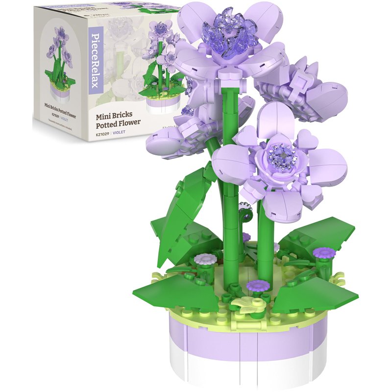 PieceRelax Flower Bouquet Building Decoration Set - Artificial Flowers Mini Bricks Potted Violet - Home Accessories or Best Gift Valentine Décor for Him and Her Botanical Collection for Adults [KZ1029]