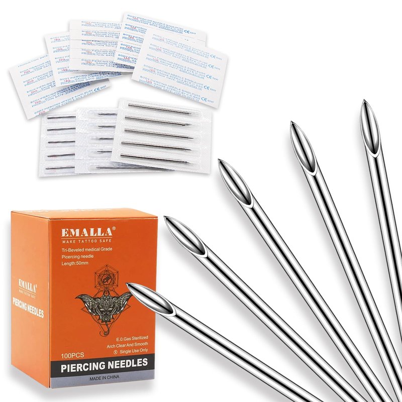 The piercing needles sold by 100pcs 14G hollow needles for each pack.