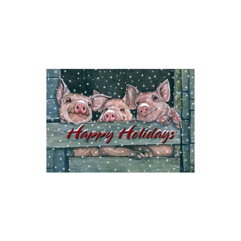 Celebrate the joy with friends and family with these caring and adorable Pig Christmas Cards. Each Holiday Card has the inside saying "Wishing you a holiday season filled fun and good cheer."