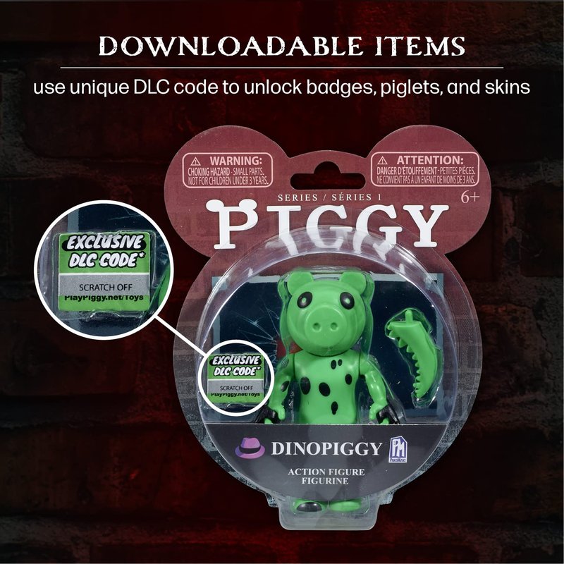 - IN-GAME VIRTUAL ITEMS: This Officially Licensed, Genuine PIGGY merchandise includes DLC Code that can be used to unlock exclusive in-game items like Badges, Piggy Tokens, and Skins.