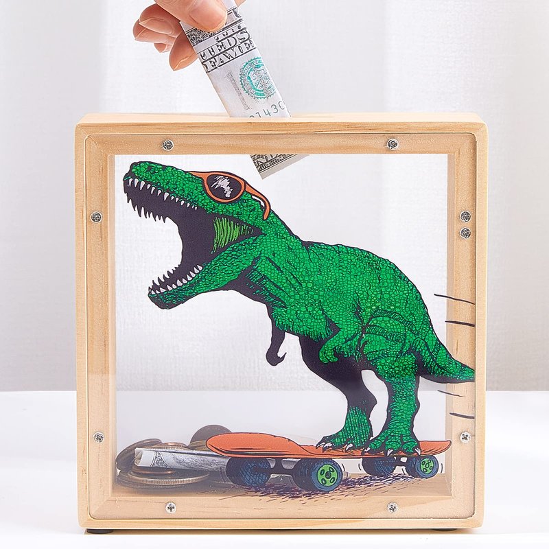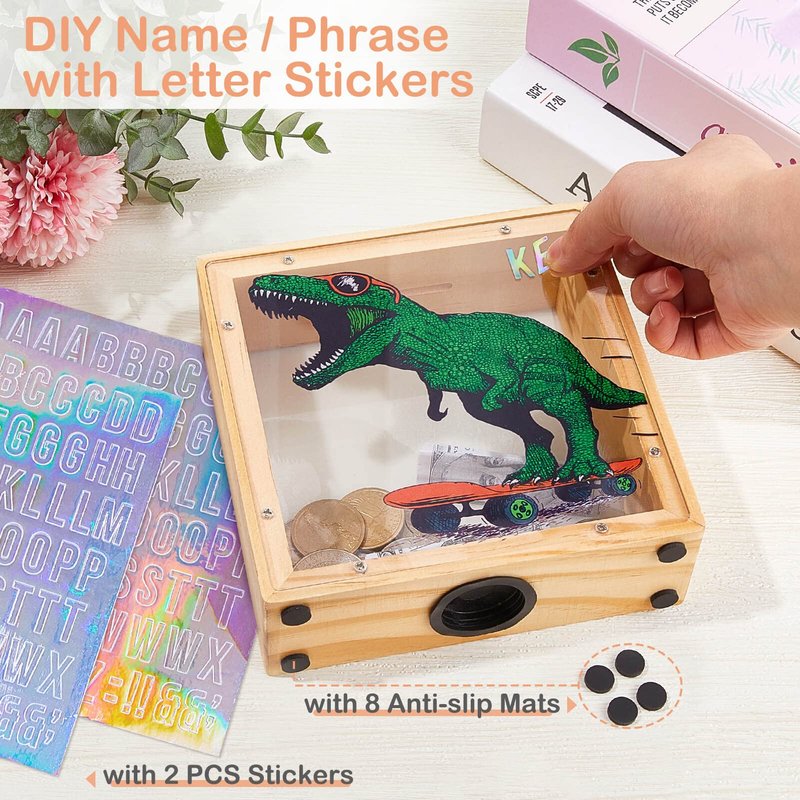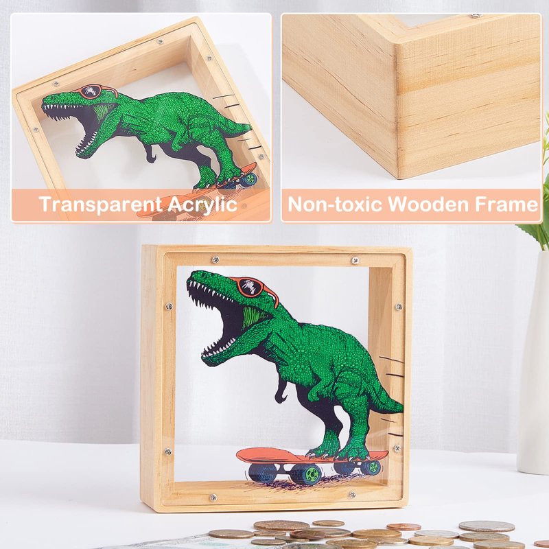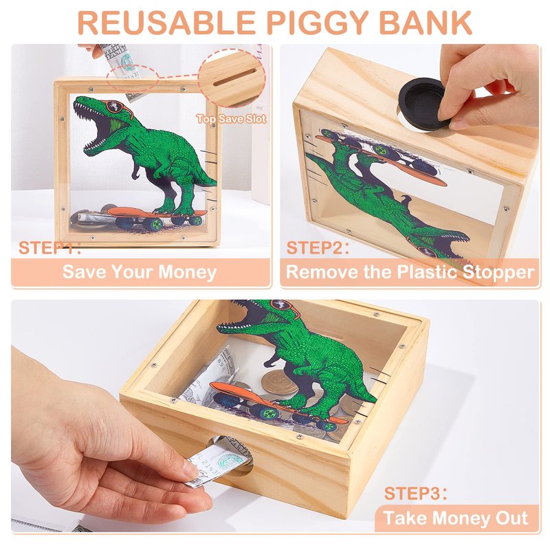 - Educational Gift for Kids:This dinosaur piggy bank is a durable, practical and educational gift for kids. Through the transparent acrylic board, your child can clearly observe the growth of his savings, teaching children to develop a habit of saving money from an early age, giving children a sense of accomplishment in saving money.