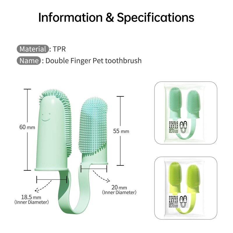 - 【Double Finger Design】 This dog finger toothbrush has 800 soft bristles distributed at 135 degrees, which can clean the hard to reach parts. It can also prevent pets from unintentionally hurting your fingers.