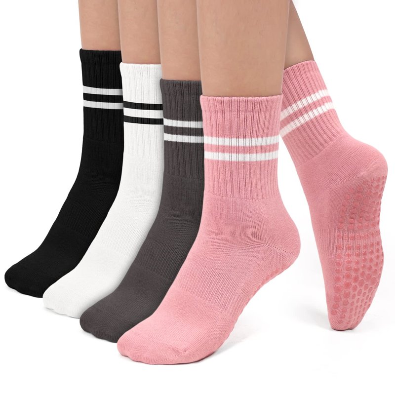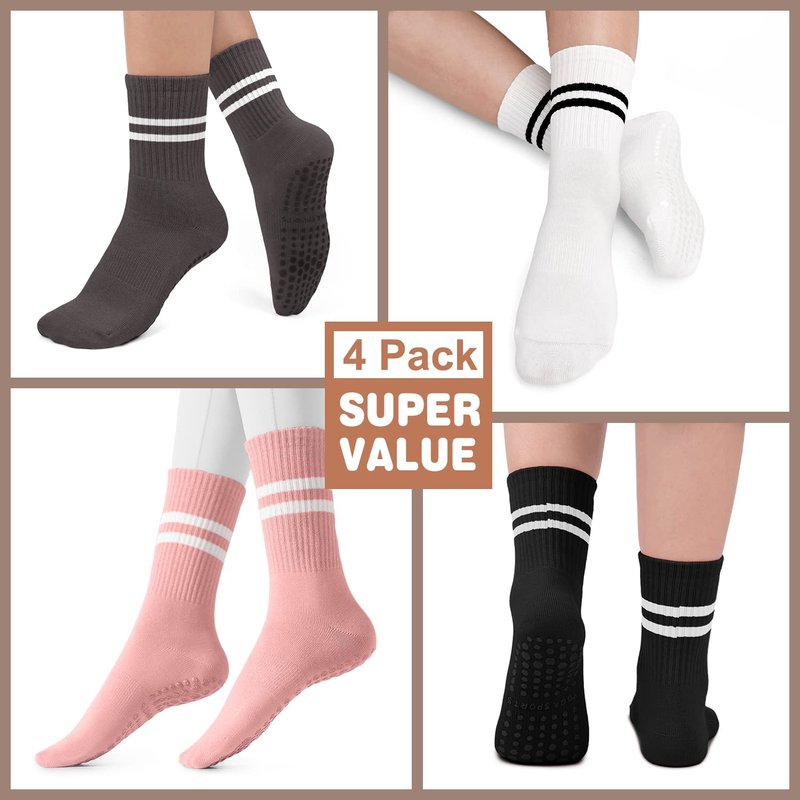Pilates Socks Yoga Socks with Grips for Women Non-Slip Grip Socks for Pure Barre, Ballet, Dance, Workout, Hospital,4 Pairs Assorted,S-M