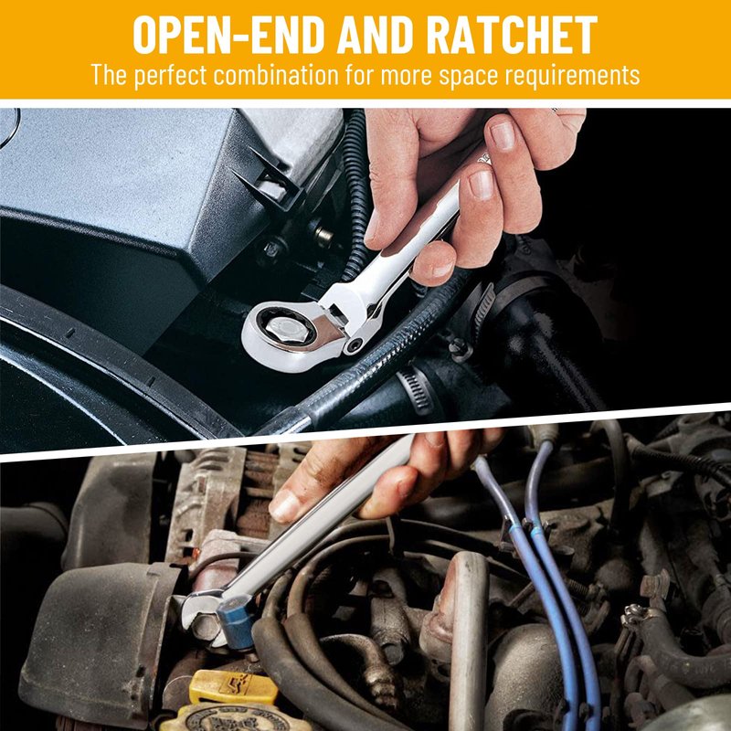 - Perfect for working in tight spaces: open end and ratcheting box end design. Oval shape beam improved comfort, Our ratcheting flex wrenches pivots 180°to easily get around obstructions