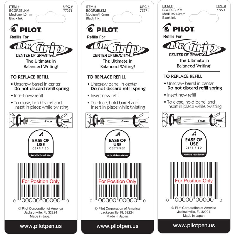 Pilot Dr. Grip Center of Gravity Ballpoint Pen Refills, Medium Point, Black Ink, 3 Packs of 2 Refills (6 Refills Total)