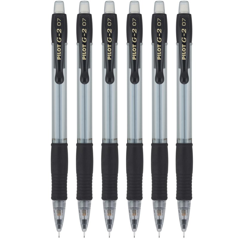 Pilot G2 Mechanical Pencils, 0.7mm HB Lead, Black/Clear Barrels, 6 Pack