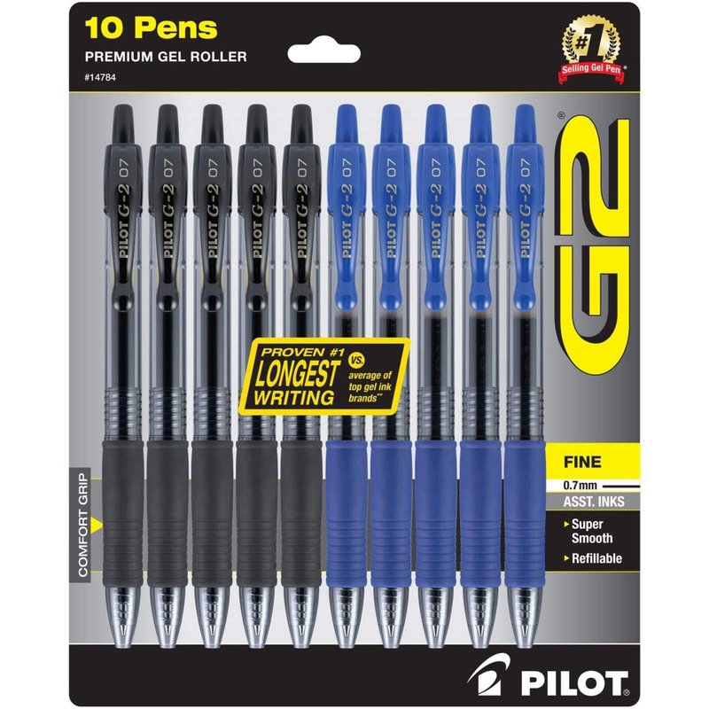 PILOT G2 Premium Fine Point Gel Ink Pen, 0.7 mm, Refillable & Retractable Rolling Ball, 5 Black and 5 Blue pens (Bulk pack of 10 Pens) (14784)
