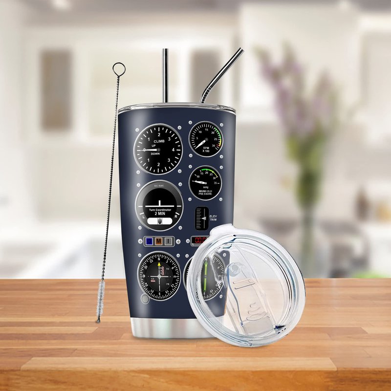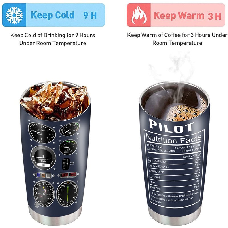 Pilot Gifts Aviation Men, Pilot Cup Tumbler, Gifts for Pilots Men, Airplane Gifts, 20oz Aviation Pilot Gauges Nutrition Facts Coffee Cup, Birthday Christmas Gifts Ideas for Pilot Insulated Travel Mug