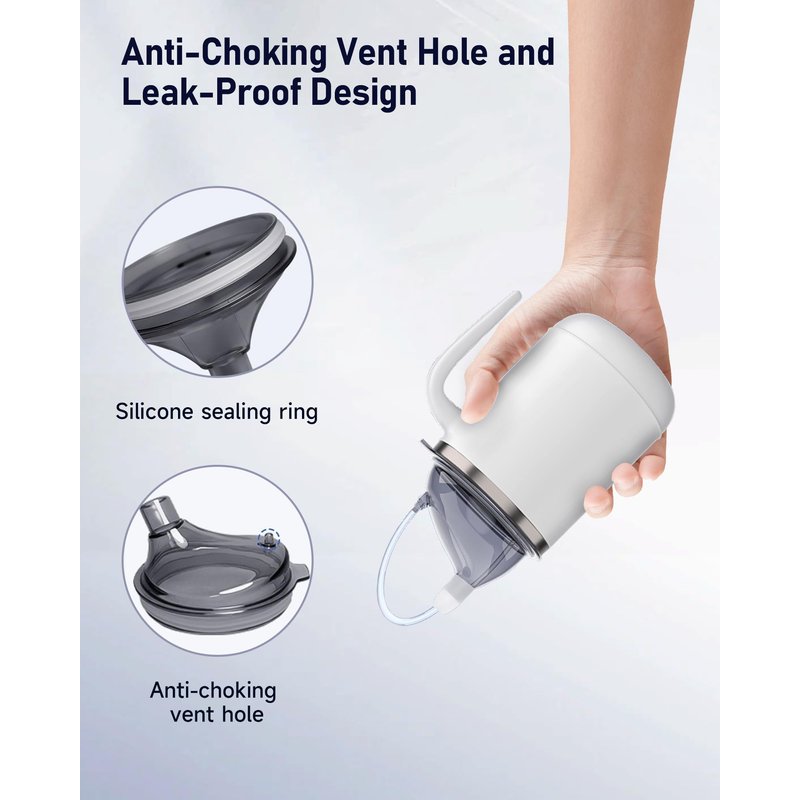 - Safe and Nearly Leak-Proof: This sippy cup with handles features a unique anti-choking venting design to ensure drinking safety. When tilted to the venting position, a small amount of liquid may spill out. After fully expelling air, it becomes leak-proof