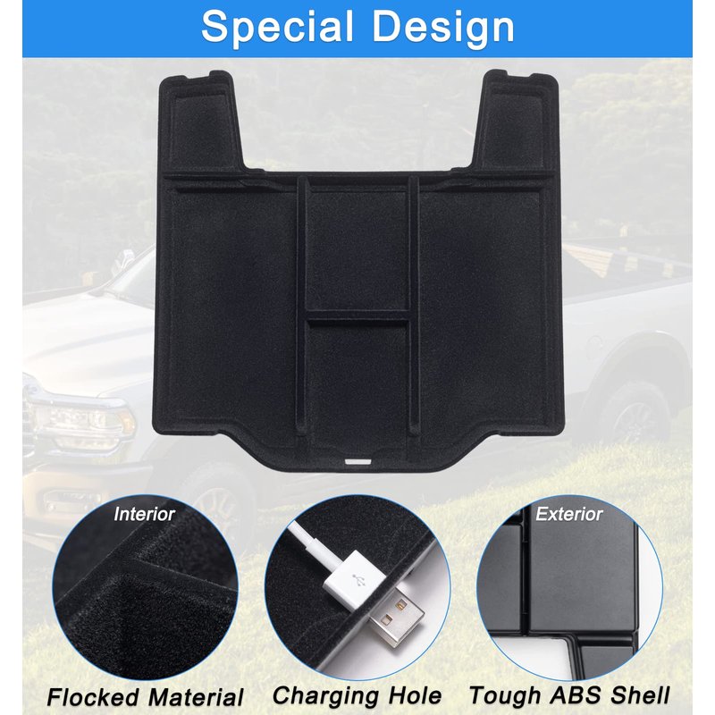 - Special Design: Designed according to the original size, leave a reserved charging port. Maximize the storage in your vehicle’s center console, and keep your armrest storage in a more organized shape.