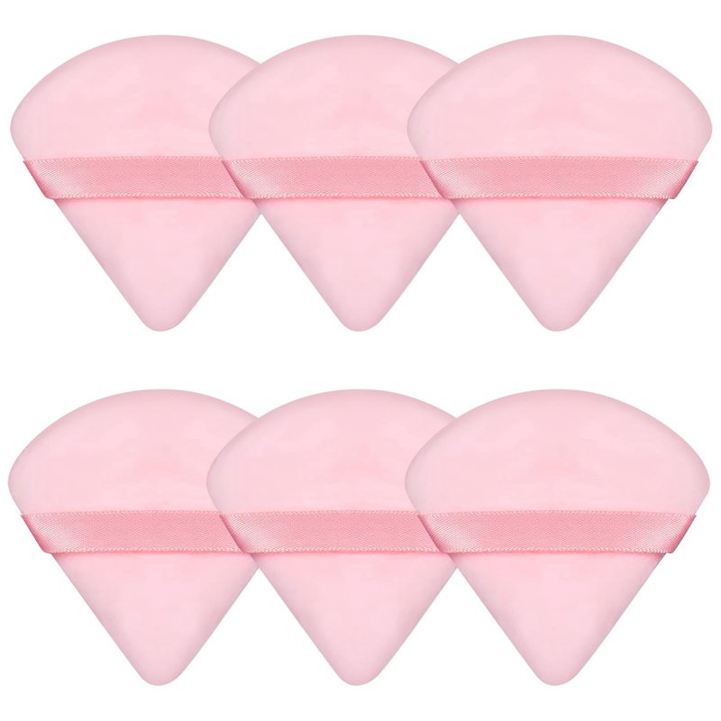 Pimoys 6 Pieces Pink Powder Puff Face Soft Triangle for Loose Powder, Velour Makeup Sponge Set Setting Powder Puff Beauty Makeup Tools